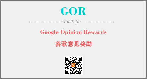 上述内容是“Google Opinion Rewards”作为“GOR”的缩写,解释为“谷歌意见奖励”时的信息,以及英文缩略词GOR所代表的英文单词,其对应的中文拼音、详细解释以及在英文中的流行度和相关分类、应用领域及应用示例等。