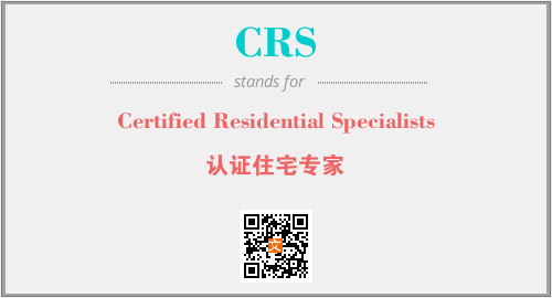 英文缩略词“CRS”经常作为“Certified Residential Specialists”的英文缩写来使用,中文表示:“认证住宅专家”。本文将详细介绍英文缩写词CRS所代表英文单词,其对应的中文拼音、详细解释以及在英语中的流行度。此外,还有关于缩略词CRS的分类、应用领域及相关应用示例等。