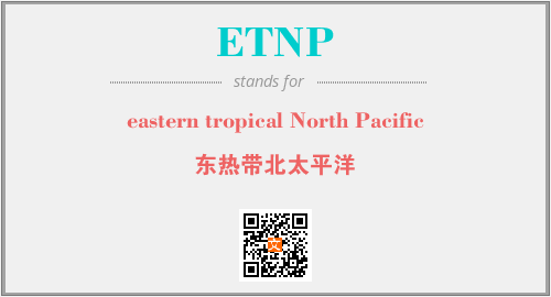 英文缩略词“ETNP”经常作为“eastern tropical North Pacific”的英文缩写来使用,中文表示:“东热带北太平洋”。本文将详细介绍英文缩写词ETNP所代表英文单词,其对应的中文拼音、详细解释以及在英语中的流行度。此外,还有关于缩略词ETNP的分类、应用领域及相关应用示例等。