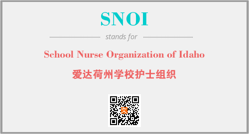 上述内容是“School Nurse Organization of Idaho”作为“SNOI”的缩写,解释为“爱达荷州学校护士组织”时的信息,以及英文缩略词SNOI所代表的英文单词,其对应的中文拼音、详细解释以及在英文中的流行度和相关分类、应用领域及应用示例等。