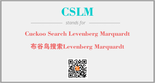 以上为Cuckoo Search Levenberg Marquardt英文缩略词CSLM的中文解释,以及该英文缩写在英语的流行度、分类和应用领域方面的信息。