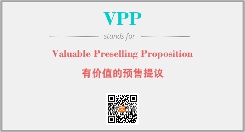 以上为Valuable Preselling Proposition英文缩略词VPP的中文解释,以及该英文缩写在英语的流行度、分类和应用领域方面的信息。