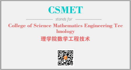 上述内容是“College of Science Mathematics Engineering Technology”作为“CSMET”的缩写,解释为“理学院数学工程技术”时的信息,以及英文缩略词CSMET所代表的英文单词,其对应的中文拼音、详细解释以及在英文中的流行度和相关分类、应用领域及应用示例等。