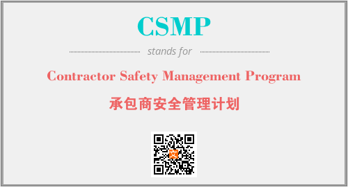 上述内容是“Contractor Safety Management Program”作为“CSMP”的缩写,解释为“承包商安全管理计划”时的信息,以及英文缩略词CSMP所代表的英文单词,其对应的中文拼音、详细解释以及在英文中的流行度和相关分类、应用领域及应用示例等。