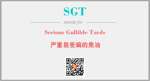 以上为Serious Gullible Tards英文缩略词SGT的中文解释,以及该英文缩写在英语的流行度、分类和应用领域方面的信息。