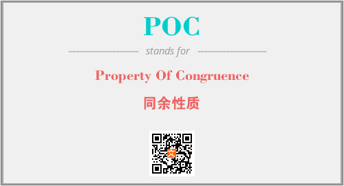 上述内容是“Property Of Congruence”作为“POC”的缩写,解释为“同余性质”时的信息,以及英文缩略词POC所代表的英文单词,其对应的中文拼音、详细解释以及在英文中的流行度和相关分类、应用领域及应用示例等。