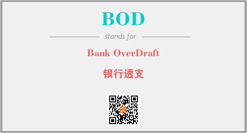 英文缩略词“BOD”经常作为“Bank OverDraft”的英文缩写来使用,中文表示:“银行透支”。本文将详细介绍英文缩写词BOD所代表英文单词,其对应的中文拼音、详细解释以及在英语中的流行度。此外,还有关于缩略词BOD的分类、应用领域及相关应用示例等。