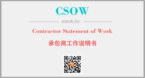 英文缩略词“CSOW”经常作为“Contractor Statement of Work”的英文缩写来使用,中文表示:“承包商工作说明书”。本文将详细介绍英文缩写词CSOW所代表英文单词,其对应的中文拼音、详细解释以及在英语中的流行度。此外,还有关于缩略词CSOW的分类、应用领域及相关应用示例等。