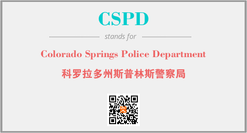 上述内容是“Colorado Springs Police Department”作为“CSPD”的缩写,解释为“科罗拉多州斯普林斯警察局”时的信息,以及英文缩略词CSPD所代表的英文单词,其对应的中文拼音、详细解释以及在英文中的流行度和相关分类、应用领域及应用示例等。