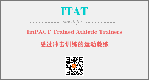 英文缩略词“ITAT”经常作为“ImPACT Trained Athletic Trainers”的英文缩写来使用,中文表示:“受过冲击训练的运动教练”。本文将详细介绍英文缩写词ITAT所代表英文单词,其对应的中文拼音、详细解释以及在英语中的流行度。此外,还有关于缩略词ITAT的分类、应用领域及相关应用示例等。