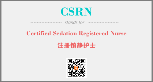 上述内容是“Certified Sedation Registered Nurse”作为“CSRN”的缩写,解释为“注册镇静护士”时的信息,以及英文缩略词CSRN所代表的英文单词,其对应的中文拼音、详细解释以及在英文中的流行度和相关分类、应用领域及应用示例等。