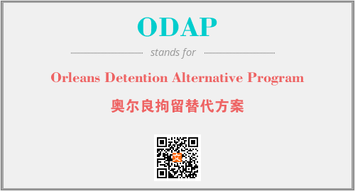上述内容是“Orleans Detention Alternative Program”作为“ODAP”的缩写,解释为“奥尔良拘留替代方案”时的信息,以及英文缩略词ODAP所代表的英文单词,其对应的中文拼音、详细解释以及在英文中的流行度和相关分类、应用领域及应用示例等。