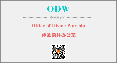 英文缩略词“ODW”经常作为“Office of Divine Worship”的英文缩写来使用,中文表示:“神圣崇拜办公室”。本文将详细介绍英文缩写词ODW所代表英文单词,其对应的中文拼音、详细解释以及在英语中的流行度。此外,还有关于缩略词ODW的分类、应用领域及相关应用示例等。