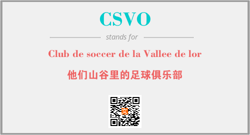 上述内容是“Club de soccer de la Vallee de lor”作为“CSVO”的缩写,解释为“他们山谷里的足球俱乐部”时的信息,以及英文缩略词CSVO所代表的英文单词,其对应的中文拼音、详细解释以及在英文中的流行度和相关分类、应用领域及应用示例等。