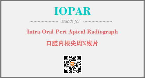 英文缩略词“IOPAR”经常作为“Intra Oral Peri Apical Radiograph”的英文缩写来使用,中文表示:“口腔内根尖周X线片”。本文将详细介绍英文缩写词IOPAR所代表英文单词,其对应的中文拼音、详细解释以及在英语中的流行度。此外,还有关于缩略词IOPAR的分类、应用领域及相关应用示例等。