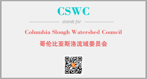 上述内容是“Columbia Slough Watershed Council”作为“CSWC”的缩写,解释为“哥伦比亚斯洛流域委员会”时的信息,以及英文缩略词CSWC所代表的英文单词,其对应的中文拼音、详细解释以及在英文中的流行度和相关分类、应用领域及应用示例等。