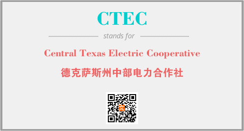 上述内容是“Central Texas Electric Cooperative”作为“CTEC”的缩写,解释为“德克萨斯州中部电力合作社”时的信息,以及英文缩略词CTEC所代表的英文单词,其对应的中文拼音、详细解释以及在英文中的流行度和相关分类、应用领域及应用示例等。