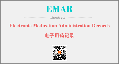 英文缩略词“EMAR”经常作为“Electronic Medication Administration Records”的英文缩写来使用,中文表示:“电子用药记录”。本文将详细介绍英文缩写词EMAR所代表英文单词,其对应的中文拼音、详细解释以及在英语中的流行度。此外,还有关于缩略词EMAR的分类、应用领域及相关应用示例等。