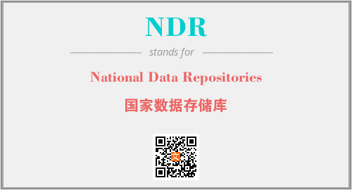 英文缩略词“NDR”经常作为“National Data Repositories”的英文缩写来使用,中文表示:“国家数据存储库”。本文将详细介绍英文缩写词NDR所代表英文单词,其对应的中文拼音、详细解释以及在英语中的流行度。此外,还有关于缩略词NDR的分类、应用领域及相关应用示例等。
