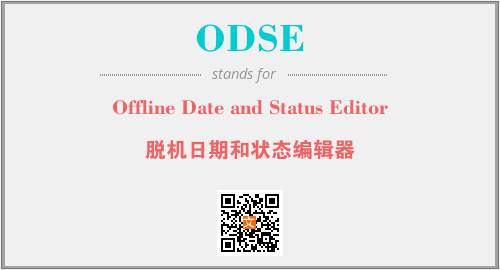 英文缩略词“ODSE”经常作为“Offline Date and Status Editor”的英文缩写来使用,中文表示:“脱机日期和状态编辑器”。本文将详细介绍英文缩写词ODSE所代表英文单词,其对应的中文拼音、详细解释以及在英语中的流行度。此外,还有关于缩略词ODSE的分类、应用领域及相关应用示例等。