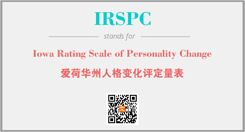 上述内容是“Iowa Rating Scale of Personality Change”作为“IRSPC”的缩写,解释为“爱荷华州人格变化评定量表”时的信息,以及英文缩略词IRSPC所代表的英文单词,其对应的中文拼音、详细解释以及在英文中的流行度和相关分类、应用领域及应用示例等。