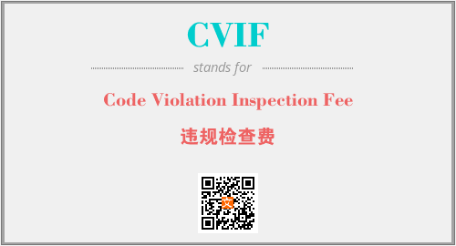 上述内容是“Code Violation Inspection Fee”作为“CVIF”的缩写,解释为“违规检查费”时的信息,以及英文缩略词CVIF所代表的英文单词,其对应的中文拼音、详细解释以及在英文中的流行度和相关分类、应用领域及应用示例等。