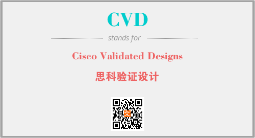 上述内容是“Cisco Validated Designs”作为“CVD”的缩写,解释为“思科验证设计”时的信息,以及英文缩略词CVD所代表的英文单词,其对应的中文拼音、详细解释以及在英文中的流行度和相关分类、应用领域及应用示例等。