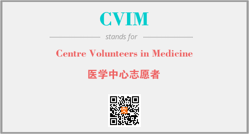 上述内容是“Centre Volunteers in Medicine”作为“CVIM”的缩写,解释为“医学中心志愿者”时的信息,以及英文缩略词CVIM所代表的英文单词,其对应的中文拼音、详细解释以及在英文中的流行度和相关分类、应用领域及应用示例等。