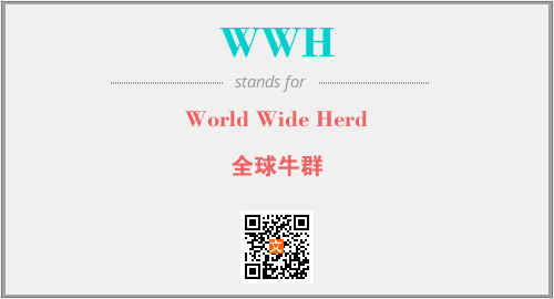 英文缩略词“WWH”经常作为“World Wide Herd”的英文缩写来使用,中文表示:“全球牛群”。本文将详细介绍英文缩写词WWH所代表英文单词,其对应的中文拼音、详细解释以及在英语中的流行度。此外,还有关于缩略词WWH的分类、应用领域及相关应用示例等。