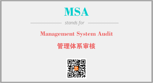 英文缩略词“MSA”经常作为“Management System Audit”的英文缩写来使用,中文表示:“管理体系审核”。本文将详细介绍英文缩写词MSA所代表英文单词,其对应的中文拼音、详细解释以及在英语中的流行度。此外,还有关于缩略词MSA的分类、应用领域及相关应用示例等。