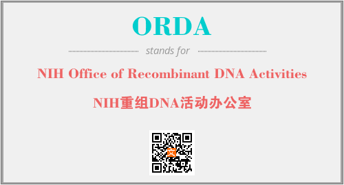 上述内容是“NIH Office of Recombinant DNA Activities”作为“ORDA”的缩写,解释为“NIH重组DNA活动办公室”时的信息,以及英文缩略词ORDA所代表的英文单词,其对应的中文拼音、详细解释以及在英文中的流行度和相关分类、应用领域及应用示例等。