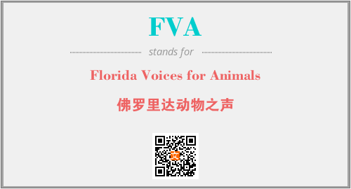 上述内容是“Florida Voices for Animals”作为“FVA”的缩写,解释为“佛罗里达动物之声”时的信息,以及英文缩略词FVA所代表的英文单词,其对应的中文拼音、详细解释以及在英文中的流行度和相关分类、应用领域及应用示例等。