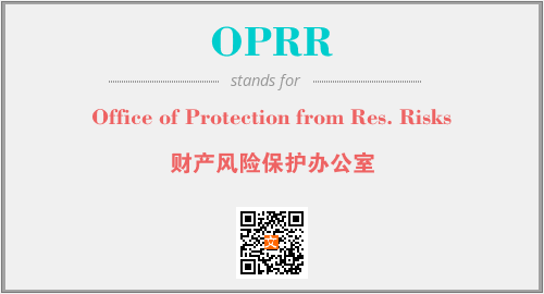 上述内容是“Office of Protection from Res. Risks”作为“OPRR”的缩写,解释为“财产风险保护办公室”时的信息,以及英文缩略词OPRR所代表的英文单词,其对应的中文拼音、详细解释以及在英文中的流行度和相关分类、应用领域及应用示例等。