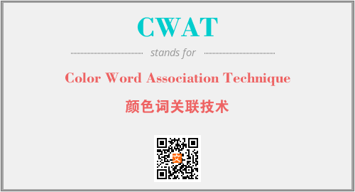 英文缩略词“CWAT”经常作为“Color Word Association Technique”的英文缩写来使用,中文表示:“颜色词关联技术”。本文将详细介绍英文缩写词CWAT所代表英文单词,其对应的中文拼音、详细解释以及在英语中的流行度。此外,还有关于缩略词CWAT的分类、应用领域及相关应用示例等。
