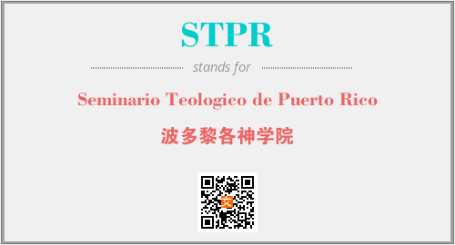 英文缩略词“STPR”经常作为“Seminario Teologico de Puerto Rico”的英文缩写来使用,中文表示:“波多黎各神学院”。本文将详细介绍英文缩写词STPR所代表英文单词,其对应的中文拼音、详细解释以及在英语中的流行度。此外,还有关于缩略词STPR的分类、应用领域及相关应用示例等。