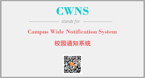 英文缩略词“CWNS”经常作为“Campus Wide Notification System”的英文缩写来使用,中文表示:“校园通知系统”。本文将详细介绍英文缩写词CWNS所代表英文单词,其对应的中文拼音、详细解释以及在英语中的流行度。此外,还有关于缩略词CWNS的分类、应用领域及相关应用示例等。