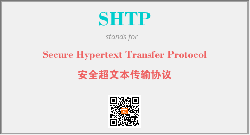 上述内容是“Secure Hypertext Transfer Protocol”作为“SHTP”的缩写,解释为“安全超文本传输协议”时的信息,以及英文缩略词SHTP所代表的英文单词,其对应的中文拼音、详细解释以及在英文中的流行度和相关分类、应用领域及应用示例等。