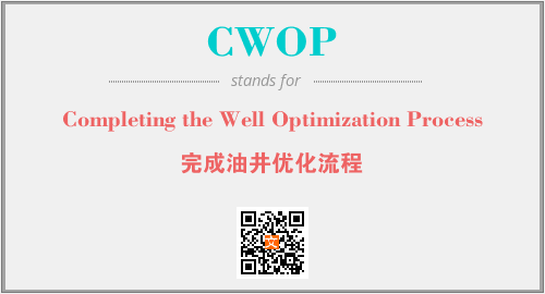 上述内容是“Completing the Well Optimization Process”作为“CWOP”的缩写,解释为“完成油井优化流程”时的信息,以及英文缩略词CWOP所代表的英文单词,其对应的中文拼音、详细解释以及在英文中的流行度和相关分类、应用领域及应用示例等。