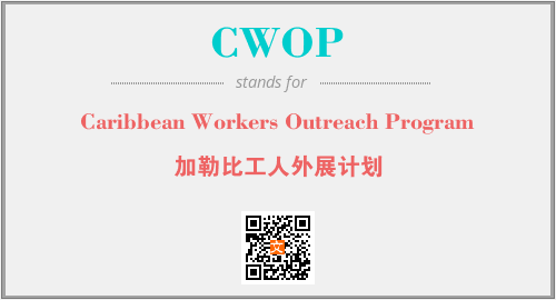 上述内容是“Caribbean Workers Outreach Program”作为“CWOP”的缩写,解释为“加勒比工人外展计划”时的信息,以及英文缩略词CWOP所代表的英文单词,其对应的中文拼音、详细解释以及在英文中的流行度和相关分类、应用领域及应用示例等。