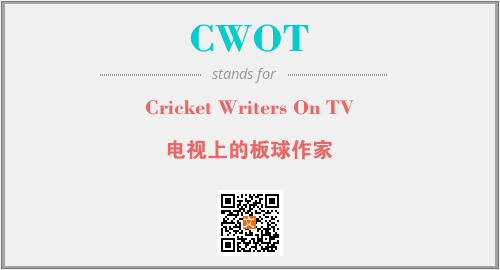 英文缩略词“CWOT”经常作为“Cricket Writers On TV”的英文缩写来使用,中文表示:“电视上的板球作家”。本文将详细介绍英文缩写词CWOT所代表英文单词,其对应的中文拼音、详细解释以及在英语中的流行度。此外,还有关于缩略词CWOT的分类、应用领域及相关应用示例等。