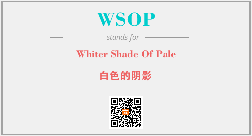 英文缩略词“WSOP”经常作为“Whiter Shade Of Pale”的英文缩写来使用,中文表示:“白色的阴影”。本文将详细介绍英文缩写词WSOP所代表英文单词,其对应的中文拼音、详细解释以及在英语中的流行度。此外,还有关于缩略词WSOP的分类、应用领域及相关应用示例等。