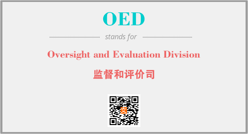 英文缩略词“OED”经常作为“Oversight and Evaluation Division”的英文缩写来使用,中文表示:“监督和评价司”。本文将详细介绍英文缩写词OED所代表英文单词,其对应的中文拼音、详细解释以及在英语中的流行度。此外,还有关于缩略词OED的分类、应用领域及相关应用示例等。