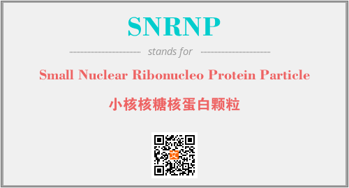 上述内容是“Small Nuclear Ribonucleo Protein Particle”作为“SNRNP”的缩写,解释为“小核核糖核蛋白颗粒”时的信息,以及英文缩略词SNRNP所代表的英文单词,其对应的中文拼音、详细解释以及在英文中的流行度和相关分类、应用领域及应用示例等。