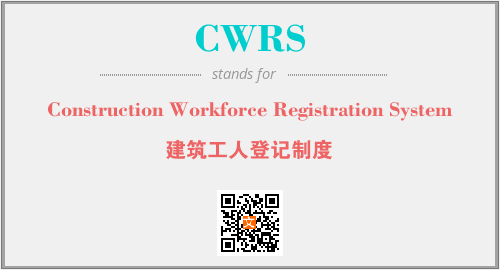 上述内容是“Construction Workforce Registration System”作为“CWRS”的缩写,解释为“建筑工人登记制度”时的信息,以及英文缩略词CWRS所代表的英文单词,其对应的中文拼音、详细解释以及在英文中的流行度和相关分类、应用领域及应用示例等。