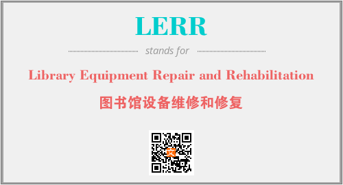以上为Library Equipment Repair and Rehabilitation英文缩略词LERR的中文解释,以及该英文缩写在英语的流行度、分类和应用领域方面的信息。