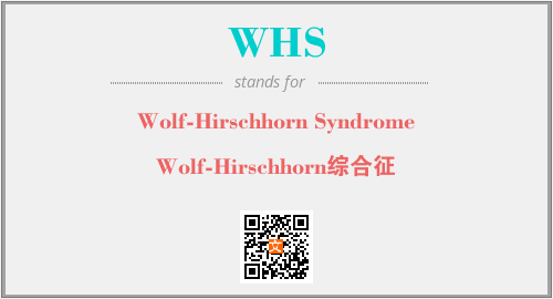 上述内容是“Wolf-Hirschhorn Syndrome”作为“WHS”的缩写,解释为“Wolf-Hirschhorn综合征”时的信息,以及英文缩略词WHS所代表的英文单词,其对应的中文拼音、详细解释以及在英文中的流行度和相关分类、应用领域及应用示例等。