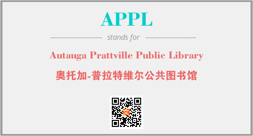 英文缩略词“APPL”经常作为“Autauga Prattville Public Library”的英文缩写来使用,中文表示:“奥托加-普拉特维尔公共图书馆”。本文将详细介绍英文缩写词APPL所代表英文单词,其对应的中文拼音、详细解释以及在英语中的流行度。此外,还有关于缩略词APPL的分类、应用领域及相关应用示例等。