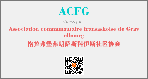 上述内容是“Association communautaire fransaskoise de Gravelbourg”作为“ACFG”的缩写,解释为“格拉弗堡弗朗萨斯科伊斯社区协会”时的信息,以及英文缩略词ACFG所代表的英文单词,其对应的中文拼音、详细解释以及在英文中的流行度和相关分类、应用领域及应用示例等。