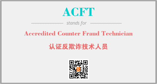 以上为Accredited Counter Fraud Technician英文缩略词ACFT的中文解释,以及该英文缩写在英语的流行度、分类和应用领域方面的信息。