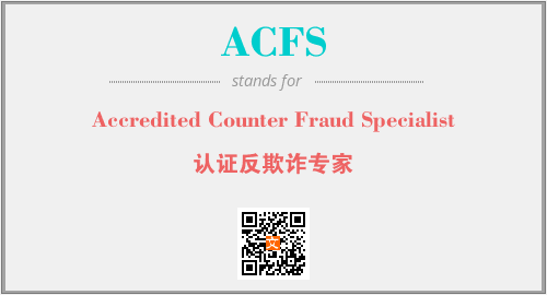 以上为Accredited Counter Fraud Specialist英文缩略词ACFS的中文解释,以及该英文缩写在英语的流行度、分类和应用领域方面的信息。